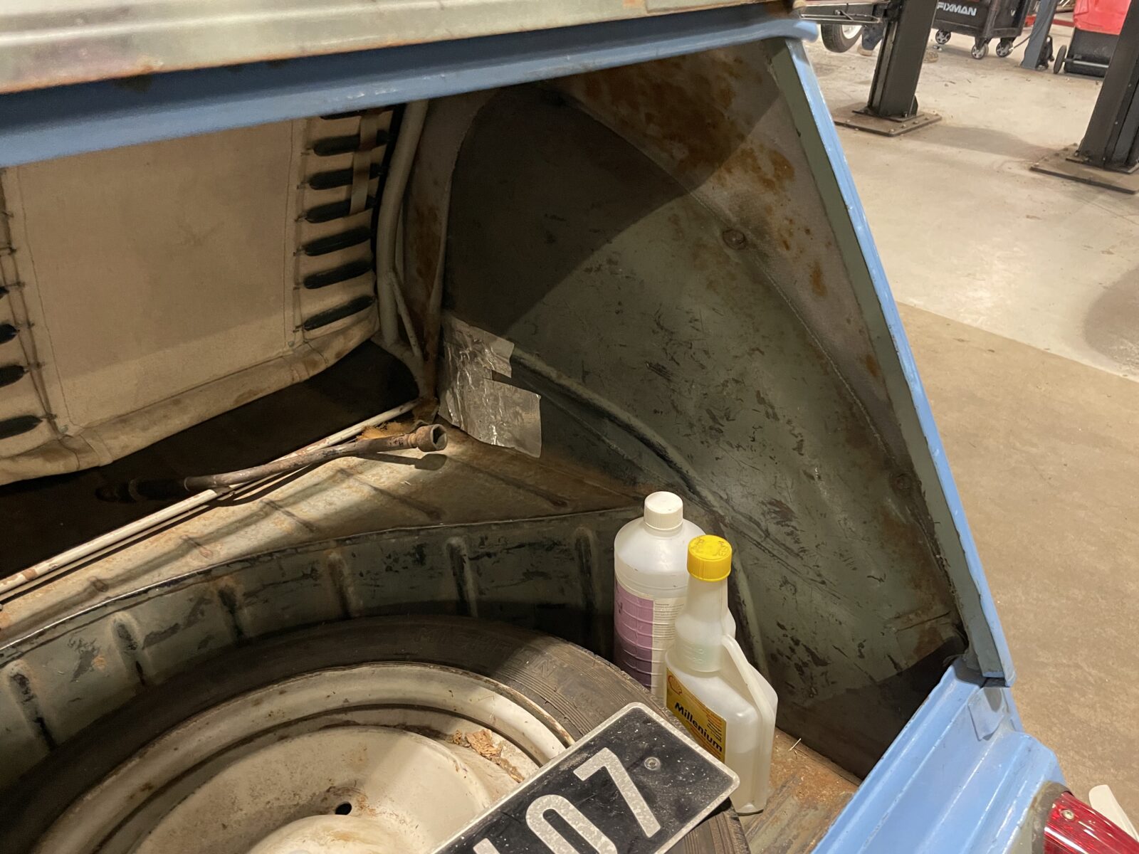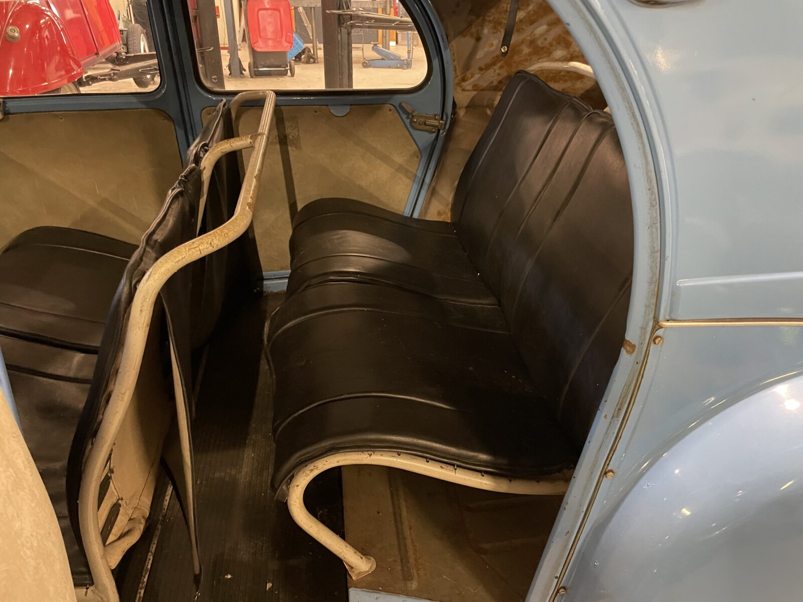 De bodemplaten en voetenbak zijn ooit al eens vervangen, maar moeten nog wel afgewerkt worden. Het chassis is in goede staat. De koets ook best wel, hoewel een nieuw dakje niet zou misstaan. Kortom, het is een leuk vrolijk projectje voor de handige Harry of Hanna.