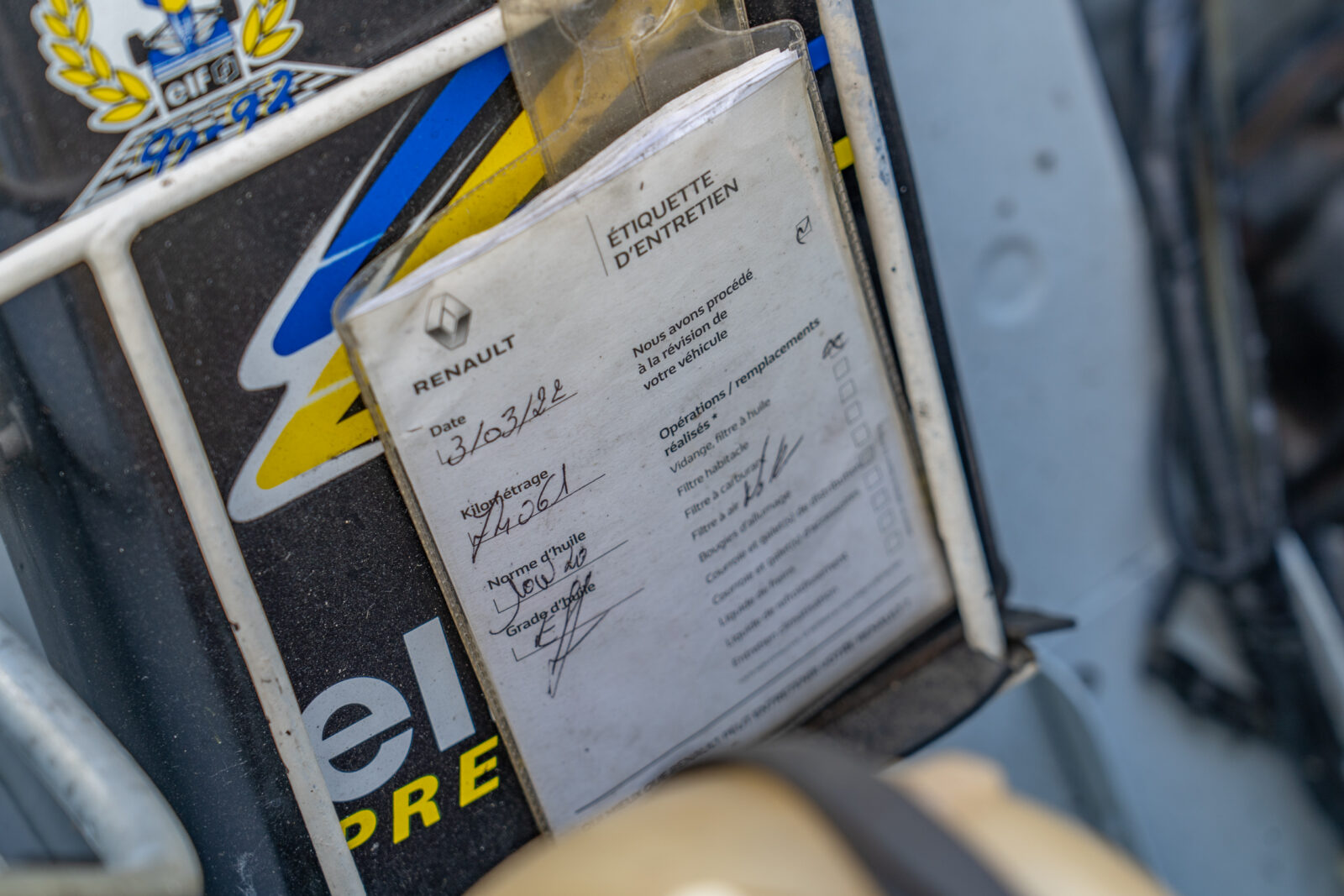 De boekjes ontbreken uiteraard ook niet. Hierin is te zien dat hij in het stadje Cavaillon in de Vaucluse door de Renault-dealer geleverd werd. De rest van zijn leven vond rond deze prachtige plek plaats, van ’91 tot ’23.